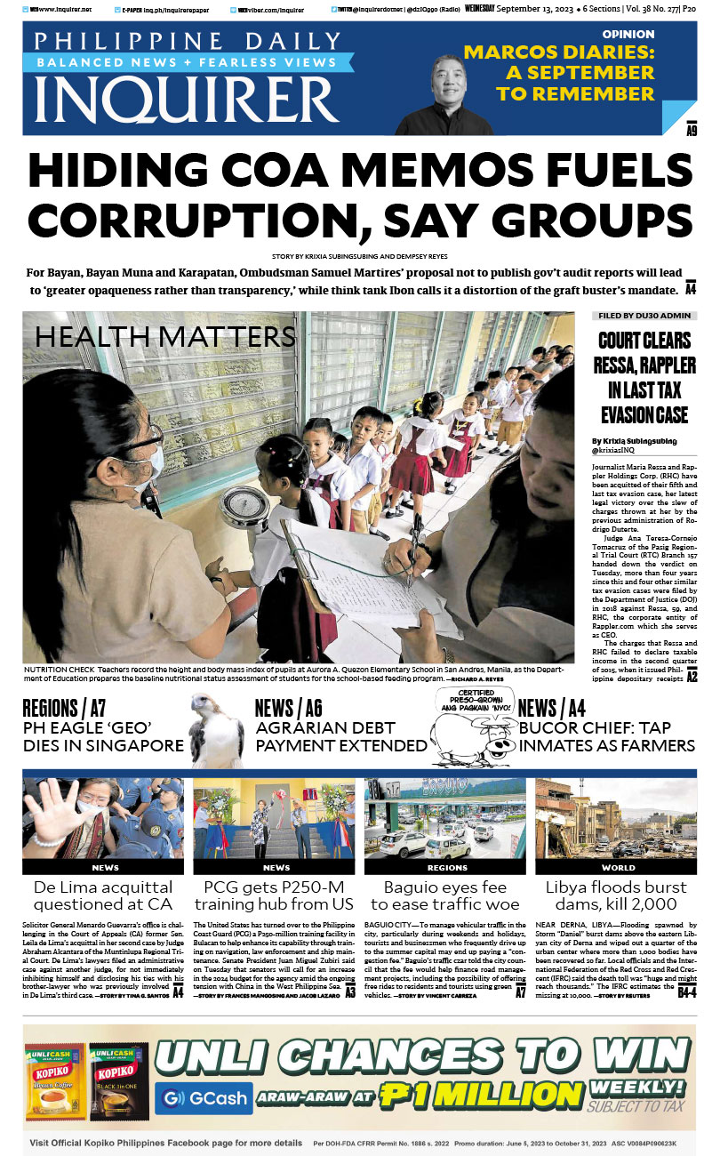 Source of pic below from the Sept 13, 2023 front page of Inquirer